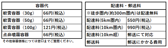 患者様の都合・希望のみに基づき、ご自宅へ調剤した医薬品の配達料・郵送料については患者様負担となります。